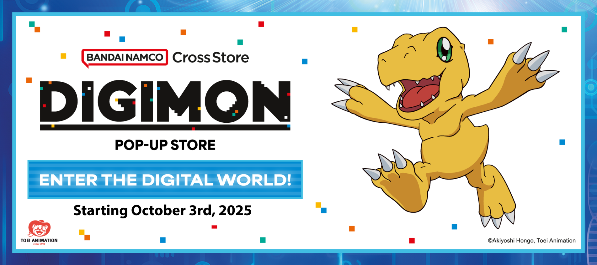 Join us for an unforgettable Digimon experience at Bandai Namco Cross Store. Whether you're a long-time fan or new to the Digital World, this limited-time pop-up brings your favourite Digimon characters to life.