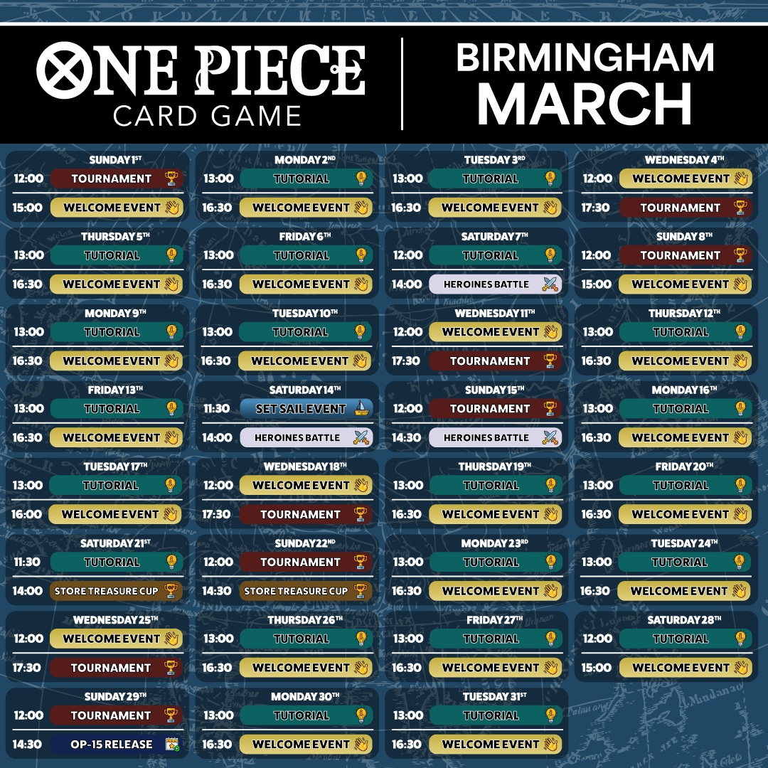 We have weekly events where you can learn the game, have fun with friends, compete, and get exclusive cards! Find out more by clicking on the below events